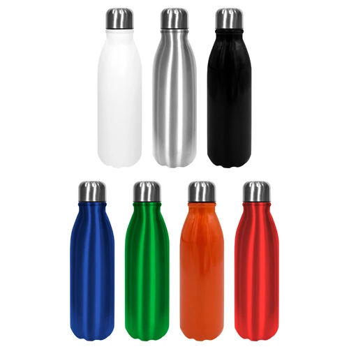 Ø 6 x 22,5 cm. Capacidad 550 ml. Aluminio. Botella de aluminio, cuerpo de diferentes colores.Tapa de acero a rosca.