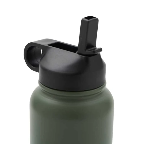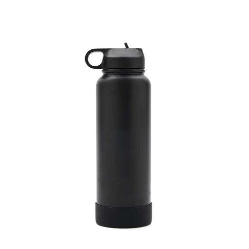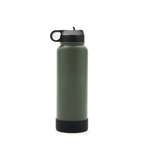 Botella isotérmica de 1000 ml, con doble pared de acero inoxidable 18/8, pintura en polvo y base de silicona antideslizante, mantiene tus bebidas frías durante 12 horas y calientes durante 8 horas. Cuenta con dos tapas negras a rosca, para que utilices la que te resulte más cómoda: la primera, con boquilla y anillo para facilitar el agarre, y la segunda con manija para transportarla. Incluye 2 sorbetes y cepillo limpiador.