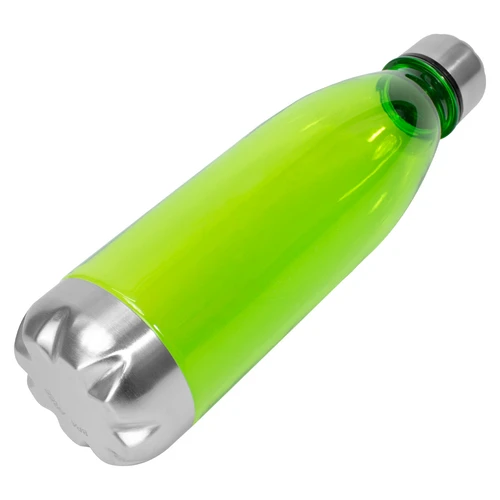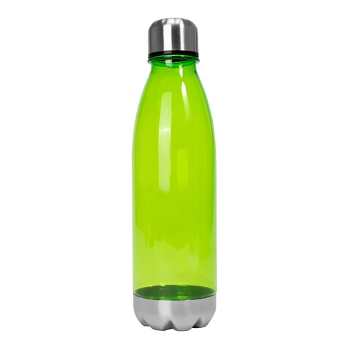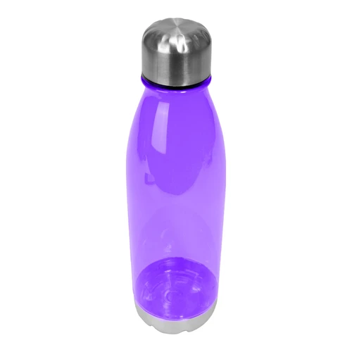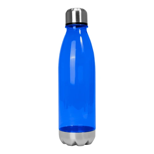 Botella plástica PET color translúcido, con fondo y tapa de Acero inoxidable, modelo "VIVID". Producto BPA FREE, para el contacto con líquidos y alimentos. Capacidad 700ml. Presentación en bolsa OPP + caja de regalo de cartón kraft.
