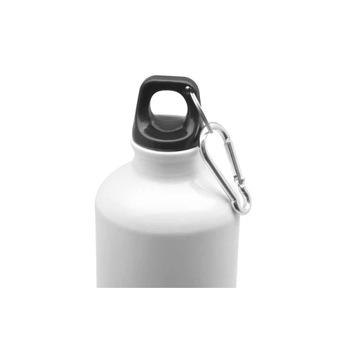 Ø 7,2 x 25,5 cm. Capacidad 750 ml. Aluminio. Botella de aluminio blanca con base para poder sublimar. Tapa a rosca plástica y gancho metálico.
