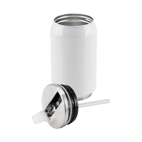 Botella Térmica Blanca de doble pared aislante modelo "Can", interior de acero inoxidable. Base y Tapa rosca metálica con dosificador. Cobertura exterior con polímero especial marca ORCA COATINGS(R) para una sublimación de primera calidad. Cada unidad se entrega dentro de su caja individual de cartón blanco.