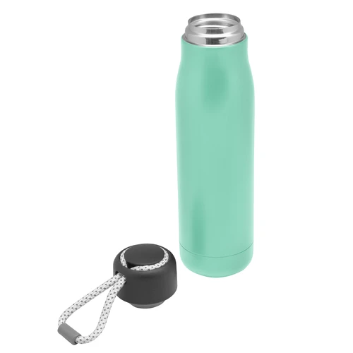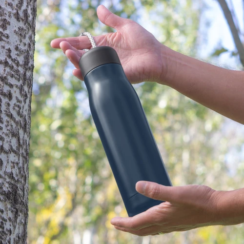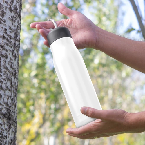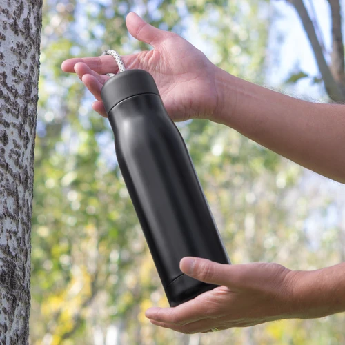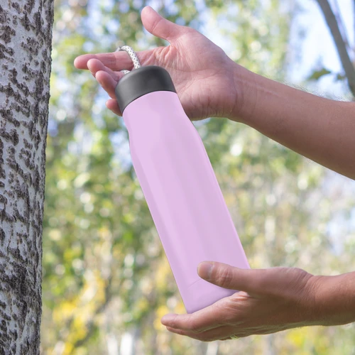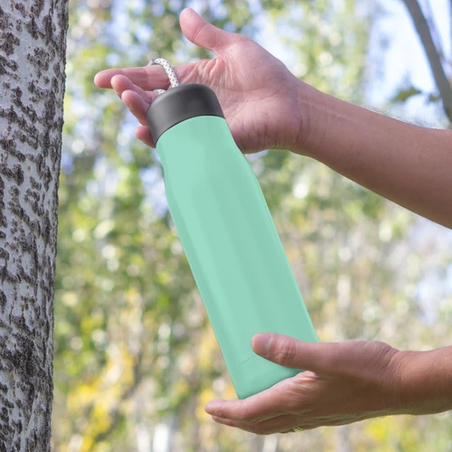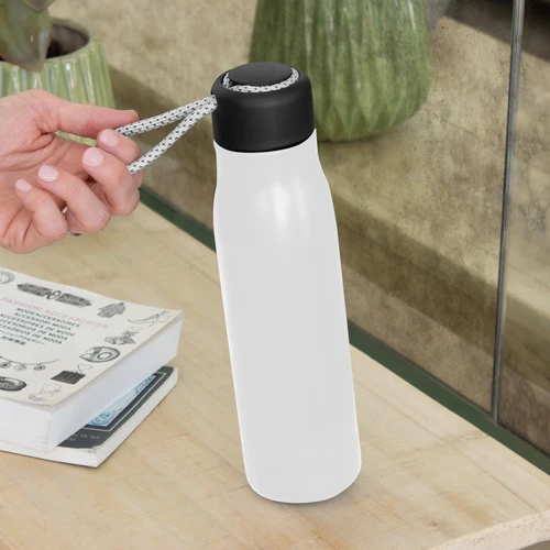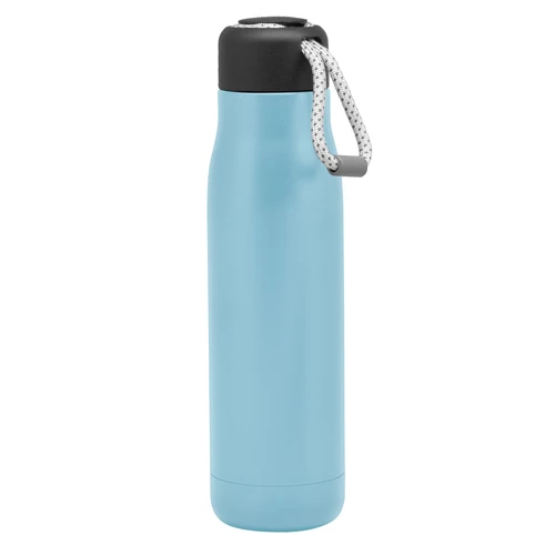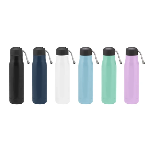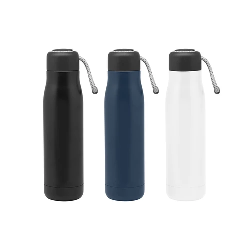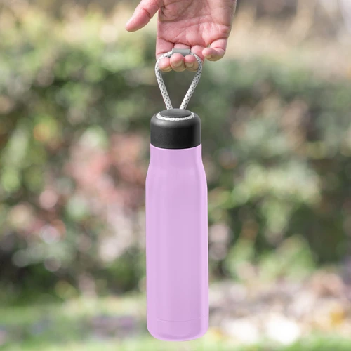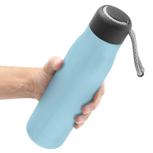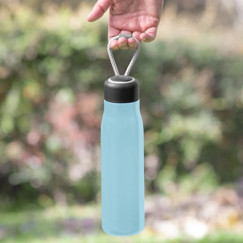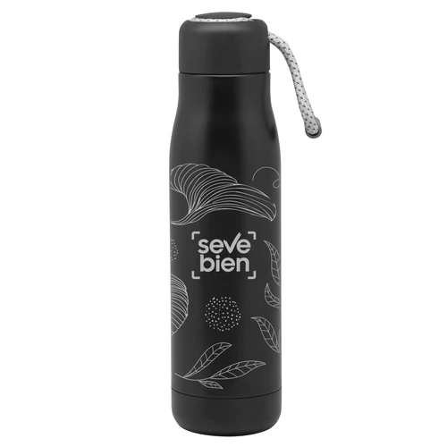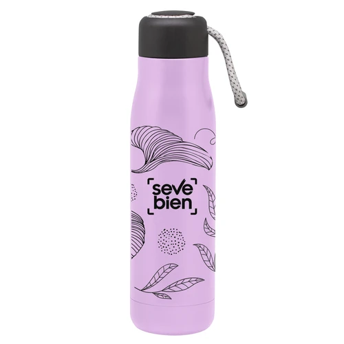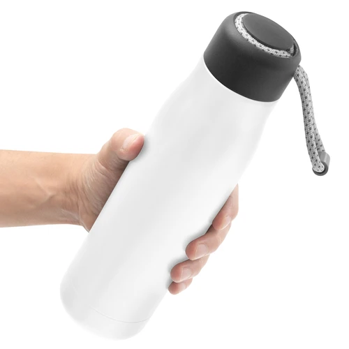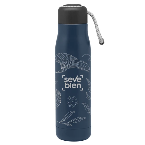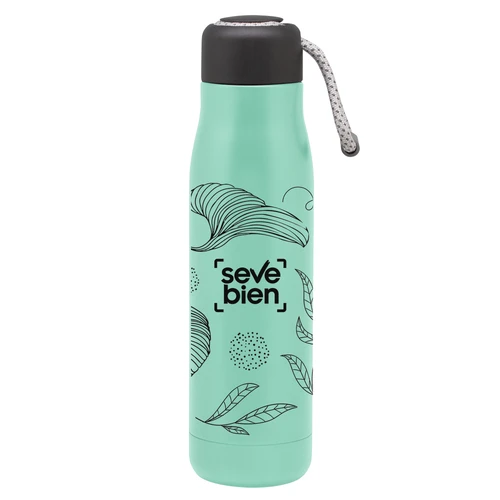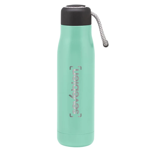 Lleva tus bebidas favoritas con la temperatura que te gusta.Botella doble pared, sellada al vacío. Interior de acero 304 y exterior de acero 201. Tapa plástica de polipropileno y anillo de silicona. Posee además tira de color gris de 12 cm de largo. Ideal para llevarla a todos lados. Mantiene hasta 6 hs la temperatura de las bebidas calientes y hasta 10 hs la de las bebidas frías.Medidas: Ø 7cm x 25.5 cm.
