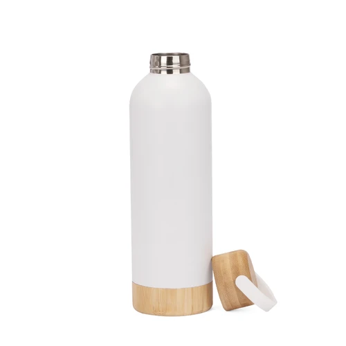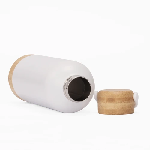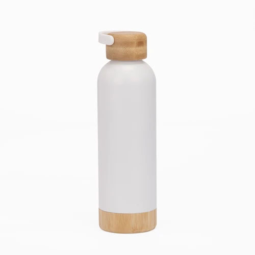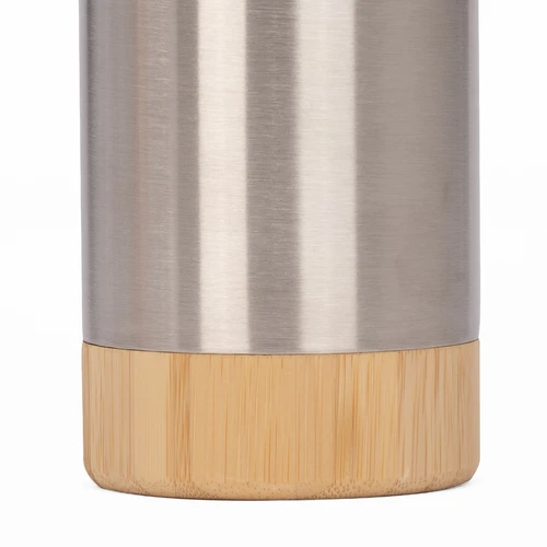 SIBERIA es una botella térmica de acero inoxidable reciclado, diseñada para acompañarte en cualquier clima con estilo y responsabilidad. Su capacidad de 550 ml y su aislamiento de doble pared mantienen la temperatura de tus bebidas por más tiempo. El cuerpo plateado se complementa con una elegante manga de bambú, aportando un detalle cálido y natural que contrasta con su acabado metálico. Su tapa de acero enroscable refuerza la seguridad y la estética. SIBERIA es ideal para marcas que buscan destacar con un mensaje de compromiso y diseño atemporal.