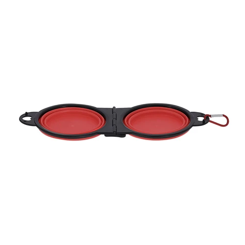 Bowl plegable para mascotas fabricado en resistente TPE. De diseño compacto, con dos compartimentos de 450 ml, perfecto para usar en cualquier sitio. Incluye práctico mosquetón a juego.