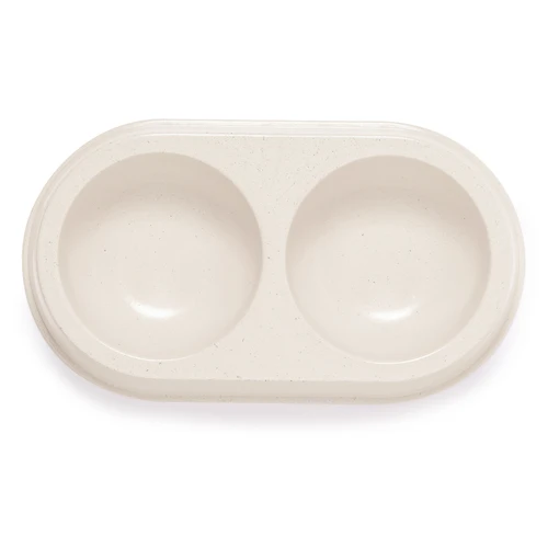 Bowl para mascotas de doble compartimento fabricado en fibra de bambú. Ideal para la alimentación de mascotas, gracias a sus dos divisiones para sólidos y líquidos. Presentado en una bolsa individual reciclada. Materiales como el bambú fomentan la utilización de materias primas naturales, reduciendo las emisiones contaminantes. Proviene de una planta de gran resistencia y versatilidad, con crecimiento y regeneración rápidos, siendo una excelente alternativa al uso de madera tradicional.