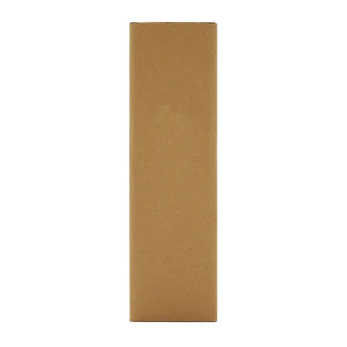 Caja confeccionada en carton Kraft, elaborado tres capas: una exterior de 250g, una capa corrugada de 80g, y una interior de 85g.