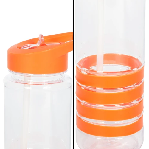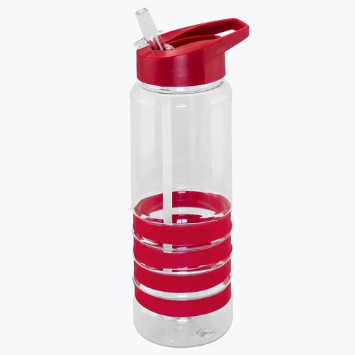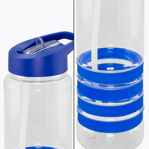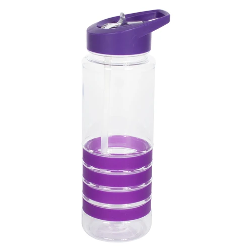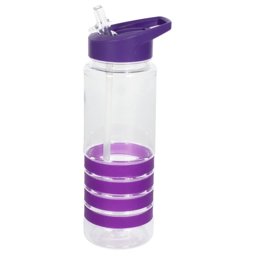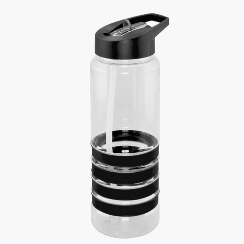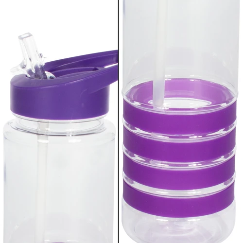 Botella deportiva modelo "Tritan", de plástico rígido traslúcido Tritan con 4 anillos de silicona de color. Tapa de plástico PP de color con bebedero retráctil. Incuye bombilla plástica en el interior. Para líquidos fríos (no térmico).