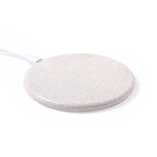 Cargador inalámbrico de diseño circular fabricado en caña de trigo, para así fomentar la utilización de materias primas naturales y reducir las emisiones contaminantes. Con función carga rápida de 10W e indicador led. Cable de carga micro USB incluido y compatible con dispositivos equipados con tecnología de carga inalámbrica. Protección de seguridad para evitar sobrecalentamiento, sobrecarga y cortocircuito. Presentado en atractiva caja de diseño nature.