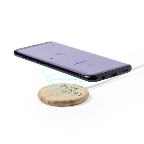 Cargador inalámbrico magnético 10W de línea nature, con carcasa fabricada en resistente bambú. Con indicador de estado de carga y cable USB de 1m. Incluye accesorio metálico con adhesivo 3M, de fijación extra fuerte y libre de residuo al despegarlo del dispositivo, permitiendo así el uso de la función magnética del cargador en cualquier dispositivo móvil. Compatible con terminales equipados con tecnología de carga inalámbrica. Amplia superficie de marcaje y presentado en atractiva caja de diseño eco. Disponible manual de instrucciones en español e inglés.