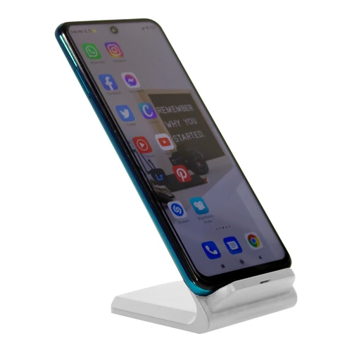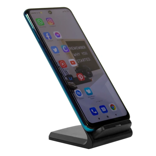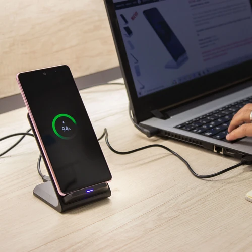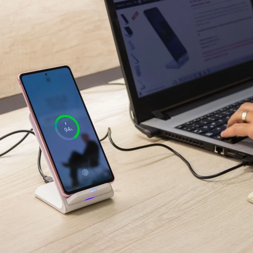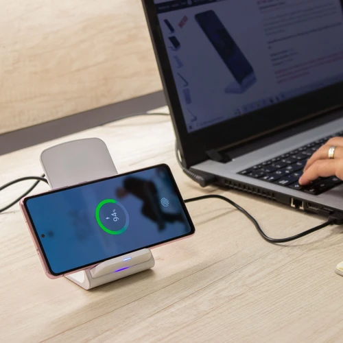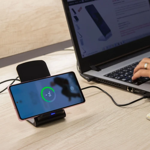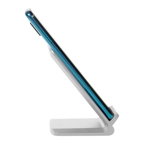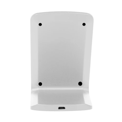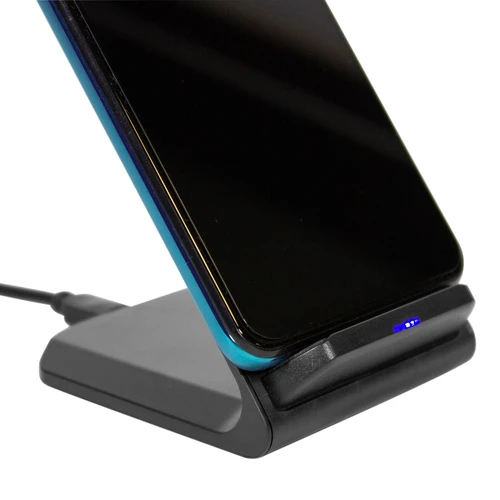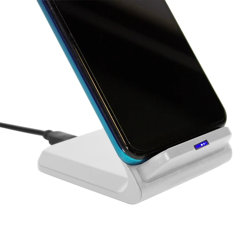 7 x 7,5 x 10,5 cm. Plástico ABS. Cargador USB de carga rápida inalámbrica para telefono móvil. Apoyando el celular comienza a cargar la bateria. Puede cargarse tanto en posicion horizontal como vertical gracias a la doble bateria de 10w c/u. Incluye cable de conexión USB de 60cm de largo. Presentación en caja de regalo.Compatible exclusivamente con celulares que permitan carga inalámbrica (tecnología qi).Voltaje de Entrada : 9V/2A