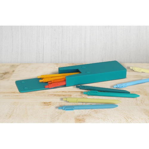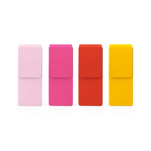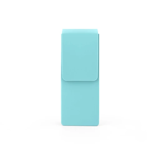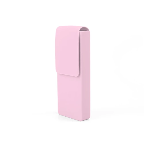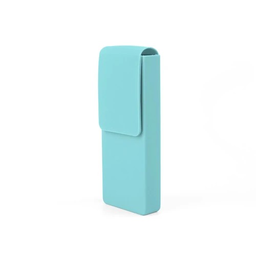 7,5 x 18,5 x 2,7 cm. Silicona. Cartuchera de silicona extra suave. Tiene una solapa imantada y es muy canchera para llevarla a todos lados. Presentación en caja de regalo.