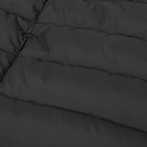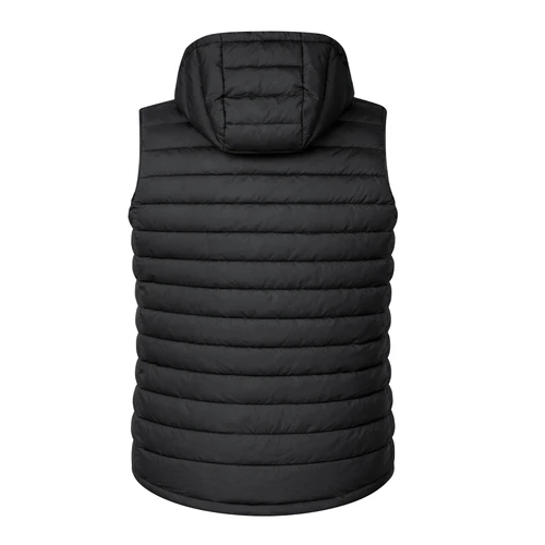 Chaleco unisex en cálido y suave material 100% RPET, con capucha ajustable mediante cintas elásticas. En material extra ligero efecto pluma, resistente al agua y cortavientos. Con acolchado interior, cremallera en cuello con tapeta y cinta en tirador, además de amplios bolsillos laterales con cremallera. Incluye práctica funda de transporte con cordón ajustable y etiqueta con logotipo RPET. Disponible en variada gama de colores y en tallas XS, S, M, L, XL, XXL.El material RPET se elabora a partir de plástico reciclado, para así fomentar la reutilización de residuos plásticos y ayudar a la sostenibilidad del planeta.