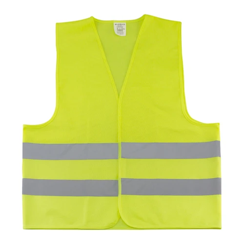 Chaleco Reflectante de Seguridad modelo "Basic", 100% tela poliéster 100 g/m2 fluorescente con bandas reflectantes color plateado de 5 cm. de ancho. Incluye cierre velcro. Cumple con norma vigente de Ley del Tránsito y norma legal EN 471.