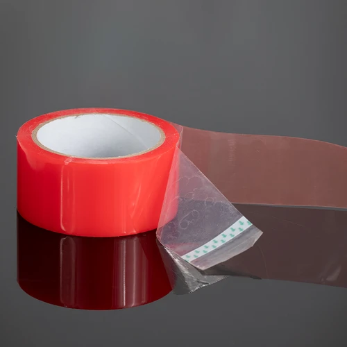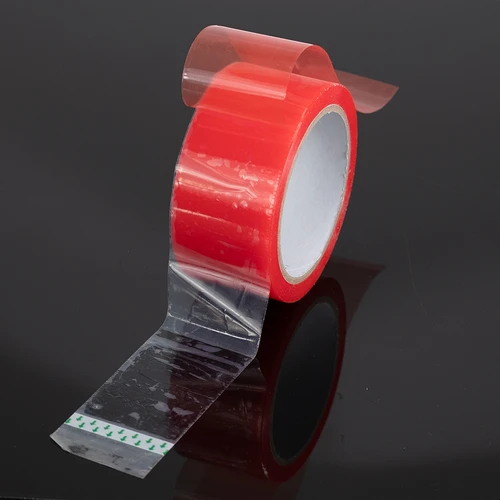 Cinta de Montaje con adhesivo doble contacto y base de color rojo, de 165 micrones de espesor x 48mm de grosor x 10m de largo.