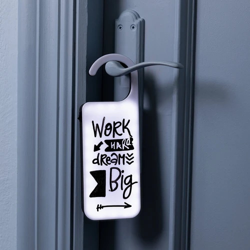 Colgador para mensajes con brillate luz interior (25 LEDs), para que todo el mundo pueda ver tus mensajitos. Botón de encendido ON/OFF, con rotulador de tinta negra y borrador. Alimentación a pilas (3xAAA no incluidas) y compartimento para guardar el rotulador. Presentada en atractiva caja de diseño.
