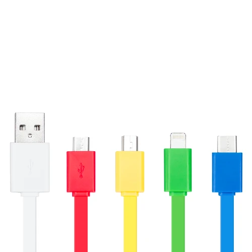 Connect Multicargador 5-en-1 con cables plásticos TPE engomado de colores y base plástica ABS blanco con mosquetón. Multi-cables con terminales de carga USB / Micro USB / Mini USB / Lightning / Type C. Compatible con dispositivos Android, Apple y Type C. Presentación en elegante bolsa OPP con orificio para colgador de ganchera. Producto con aprobación CE, ROHS, FC.