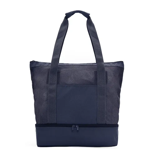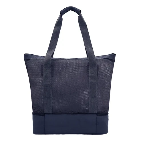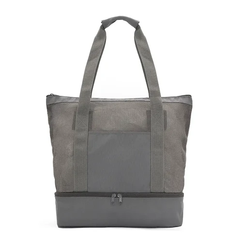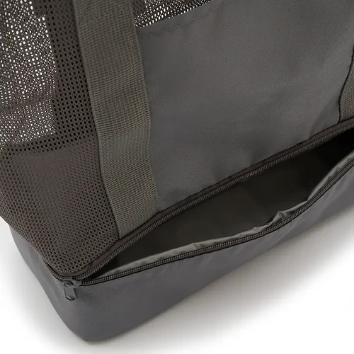 Bolso térmico tipo tote con doble compartimiento. Confeccionado en poliéster reciclado RPEAT 300D y 150D, malla RPEAT, espuma PE de 3 mm y revestimiento interior en PEVA 13C. Cuenta con compartimiento superior de malla, una base aislante térmica que funciona como cooler y asas largas reforzadas. Ideal para mantener alimentos y bebidas frescas durante salidas al parque, la playa o paseos.