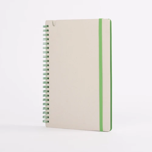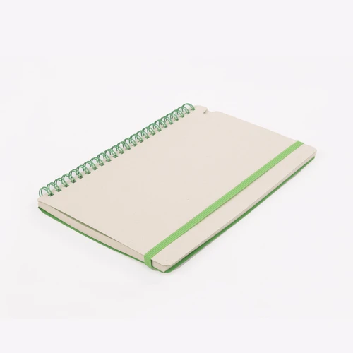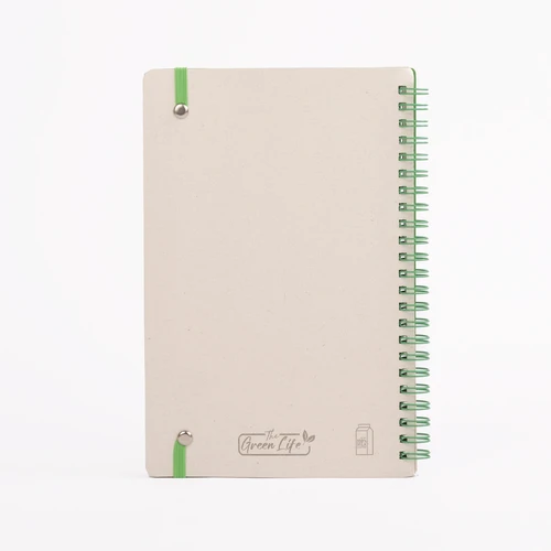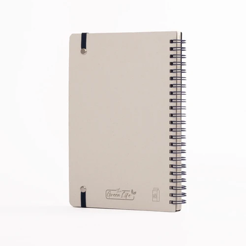 OSORNO es un cuaderno A5 de espiral lateral que convierte el reciclaje en funcionalidad. Con cubierta y páginas elaboradas a partir de cartón de envases lácteos recuperados, este cuaderno ofrece una alternativa consciente para el día a día. Sus 70 hojas de papel blanco con leve tono gris conservan la identidad del material reciclado, mientras la espiral y banda elástica en color verde refuerzan visualmente su espíritu ecológico. OSORNO es práctico, personalizable y perfecto para marcas que desean promover hábitos responsables a través de artículos útiles y con historia.