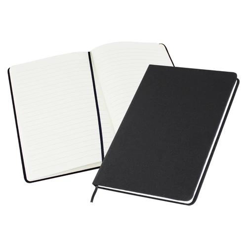 Cuaderno tamaño A5, con cubierta de cartón piedra forrada en tela lino de 2mm de espesor. Interior 80 hojas lineadas amarillas de 80gsm. Incluye banda separador de hojas al tono. Presentación individual en bolsa de polipropileno.