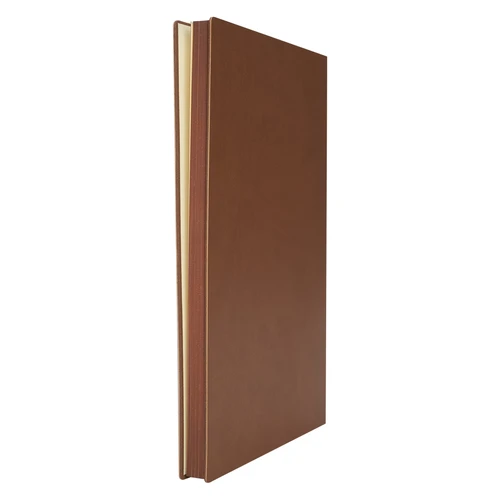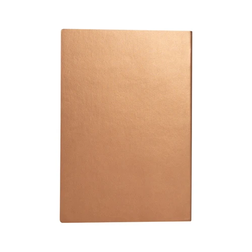 Cuaderno tamaño A5, con cubierta de PU eco-cuero de 2mm de espesor y lomo pintado de color al tono. Interior 80 hojas lineadas amarillas de 80gsm. Incluye banda separador de hojas al tono. Presentación individual en bolsa de polipropileno.