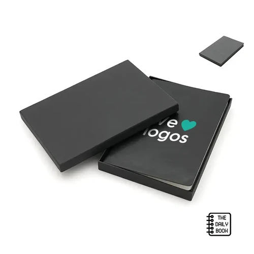 Presentado en una elegante caja negra, es el regalo ideal para quienes buscan un cuaderno de alta calidad y estilo.