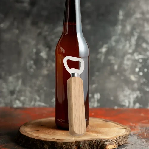 Destapador de botellas fabricado en acero con mango de madera de caucho, combina un diseño clásico con materiales resistentes y duraderos.