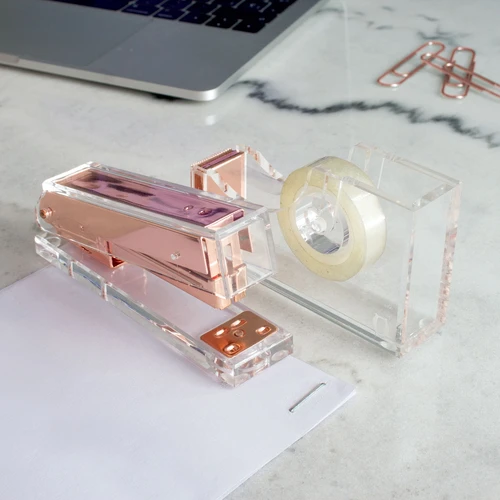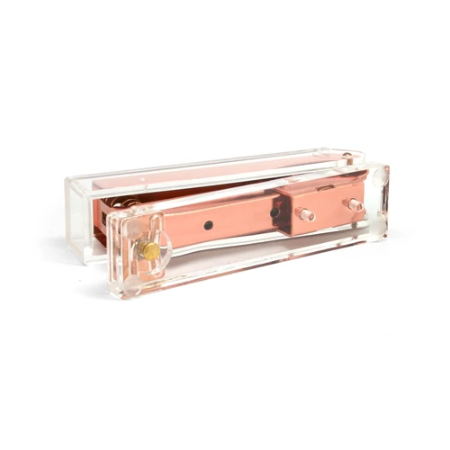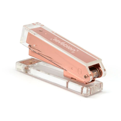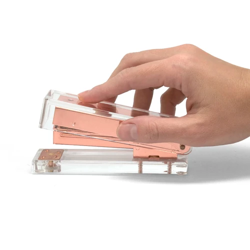 12,8 x 6 x 3,1 cm. Acrílico y metal. Engrapadora de escritorio que combina diseño y funcionalidad para el día a día. Para broches tamaño 21/6. Presentación en caja de regalo.