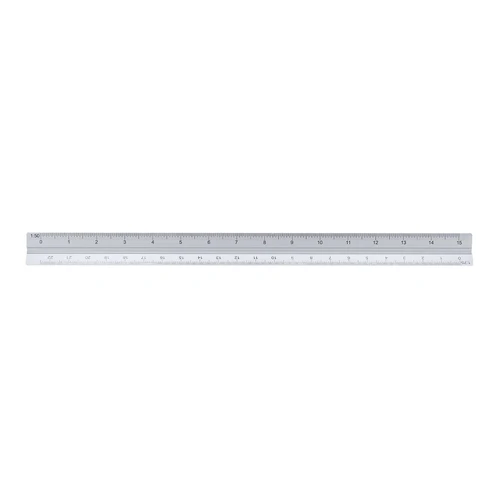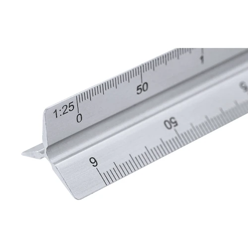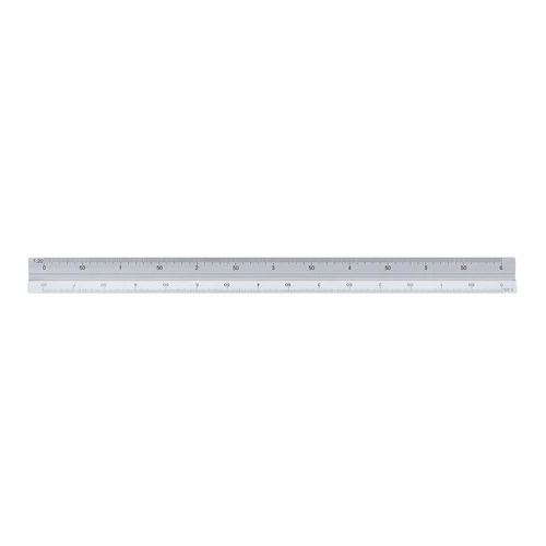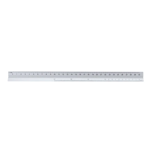 Escalímetro de aluminio en diseño triangular de 30cm. Escalas 1:20/1:25/1:50/1:75/1:100. Con cara lisa para marcaje. Presentado en caja individual.