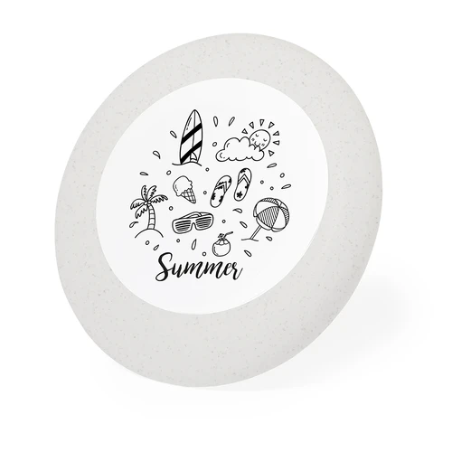 Original frisbee personalizable fabricado en caña de trigo. Divertido conjunto de ceras y frisbiee con zona para poder colorear el original dibujo de naturaleza. Presentado en bolsa de papel reciclado. Incluye:Frisbee con dibujo de naturaleza para colorear.Caja de 6 ceras en multitud de colores.