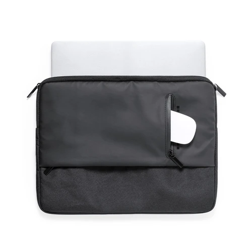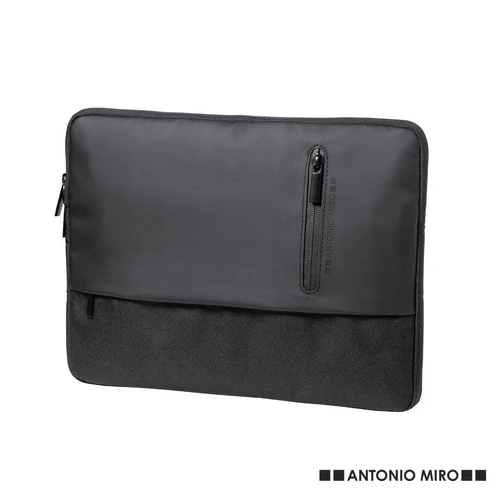 Funda de ordenador de Antonio Miró en calidad premium, fabricada en resistente poliéster 600D. De sobrio diseño y con compartimento acolchado para portátil de hasta 15 pulgadas. Cierres de cremallera con tiradores metálicos y bolsillo frontal. Logotipo de la marca en frontal.