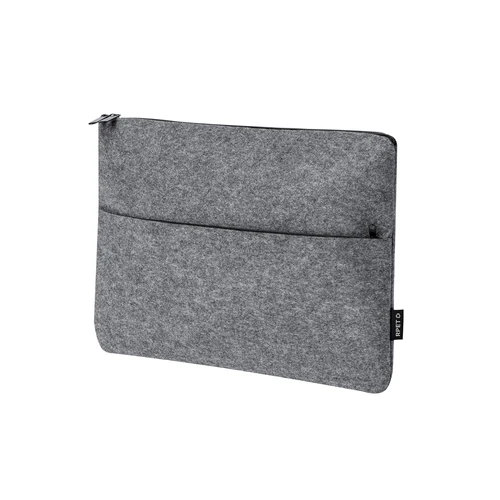 Funda para ordenador portátil fabricada en fieltro RPET. Bolsillo principal acolchado con cierre de cremallera, para portátiles de hasta 15 pulgadas, y bolsillo frontal para objetos más pequeños. Logotipo RPET en etiqueta. El fieltro RPET es fruto de la combinación del proceso de reciclaje de materiales plásticos junto con la técnica milenaria de fabricación del fieltro, dando como resultado un material de eco-tendencia que, además de ser de origen reciclado, también se convierte en reciclable.