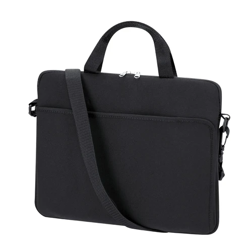 Funda para ordenador portátil confeccionada en soft shell, con compartimento principal acolchado para dispositivos de hasta 14 pulgadas. Diseñada con cierre de cremallera de doble tirador y un práctico bolsillo exterior de acceso rápido. Fácil de transportar gracias a sus asas de mano, cinta para hombro ajustable y cinta trasera para trolley.