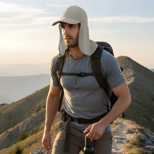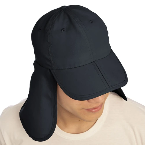 Protección extendida para cada aventura.Gorra con visera y cubre cuello. 6 paneles. Orificios de ventilación bordados. Botón forrado. Banda absorbente de poliéster. Visera rígida plegable. Ajuste por banda elástica. Medidas: 18,5 x 26 x 31,5 cm. / 56 cm. circunferencia.