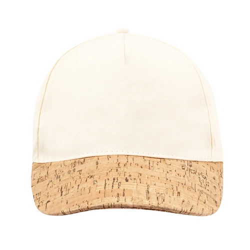 Gorra de línea nature de 5 paneles fabricada algodón orgánico, con visera en corcho natural. Con cierre ajustable de velcro.
