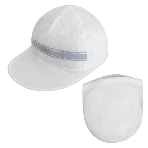 Gorro promocional plegable de poliéster, con banda reflectante en el frente. Se guarda plegado en bolsita ovalada de poliéster. Simple, económico y fácil de imprimir o sublimar, ideal para promociones de verano.