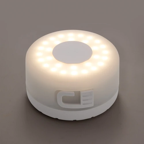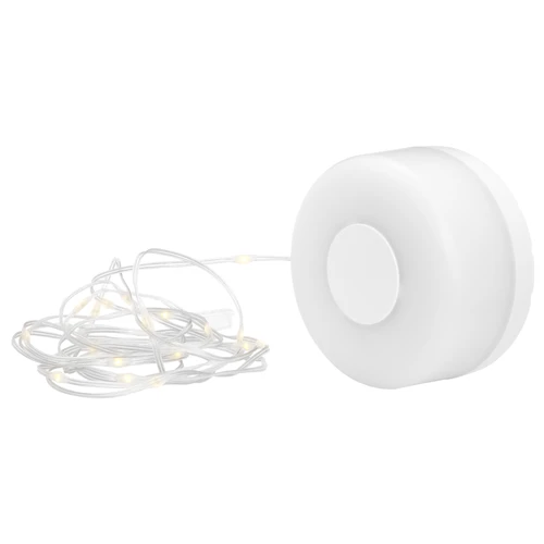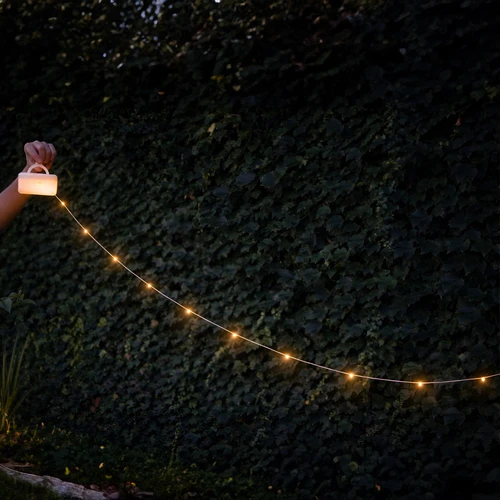 Iluminación que transforma el ambienteGuirnalda de luces retráctil. Lámpara portátil. Linterna recargable. Tira de 8 m. de largo de luz led cálida. Batería de litio recargable. 5 modos de luz: fija, intermitente y gradual cálida, fija combinando cálida con fría y fija fría de 30 luces led de alta potencia. Gancho/manivela resistente para colgar y enrollar la tira. Material apto para exteriores. Ideal para trekking, camping, colgar en carpas o decoración del hogar. Incluye cable de carga USB-C de 80 cm. de largo.Medidas: Ø 9 cm x 5 cm.