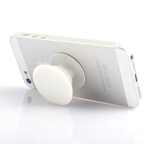 Holder POP UP plástico para celular compacto. Colores: Blanco o negro. Medidas: Diámetro 4 cm.