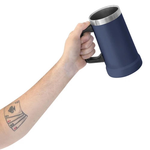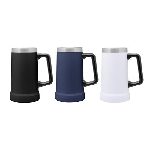 Disfruta tus bebidas frías por más tiempo Jarro cervecero doble pared, sellado al vacío. Interior en acero 304 y exterior en acero 201. Mango Plástico. Pintura Powder coat (pintura más duradera y resistente a la corrosión y el paso del tiempo). Mantiene hasta 8 hs la temperatura de las bebidas calientes y hasta 12 hs la de las bebidas frías. Medidas: 17 cm. x Ø 10 cm. (diámetro inferior) y Ø 8,5 cm. (diámetro superior)