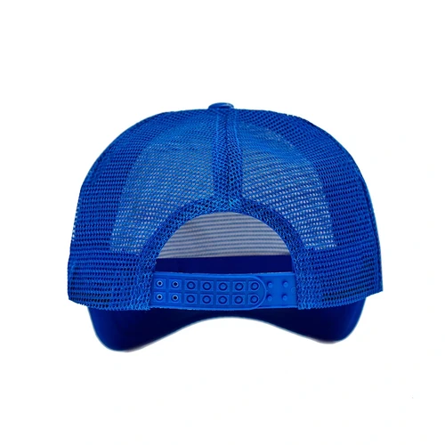 Jockey de 5 paneles en Polyester. Parte trasera con tela red de color. Ajuste con broche plástico.