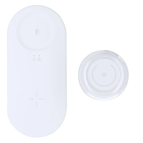 Lámpara multifunción. Incluye:- Lámpara portátil de carga inalámbrica de 12 LEDs. Con 2 posiciones de luz regulables por botones táctiles: luz blanca y multicolor. - Cargador inalámbrico de 15W.