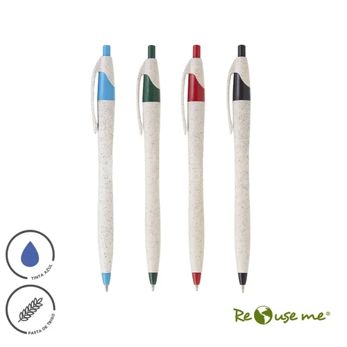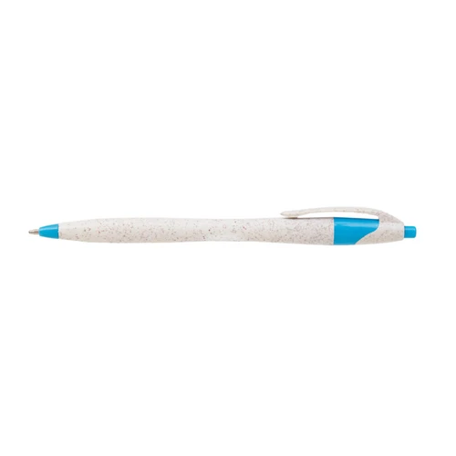 Lápiz confeccionado en ABS y Wheat Straw, pasta de tallo de trigo, un material sustentable que reduce el consumo de plásticos vírgenes. Tinta de color azul.