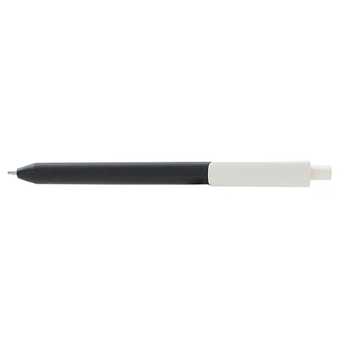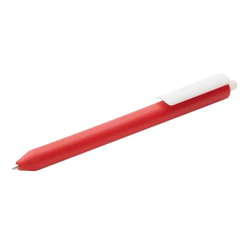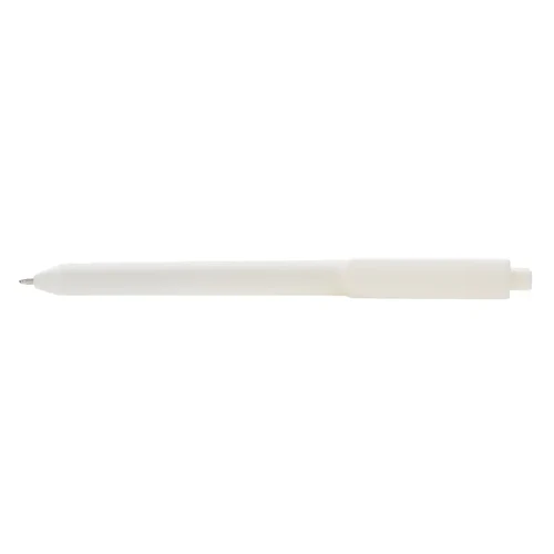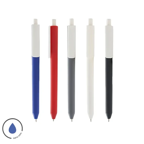 Lápiz confeccionado en ABS, con clip en color blanco. Apertura con pulsador retractil. Tinta azul.