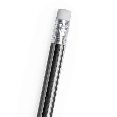Lápiz de madera de acabado brillo. Cuerpo hexagonal y diseño bicolor, con goma de borrar en color blanco. Disponible en variada gama de colores, con mina negra y punta afilada.