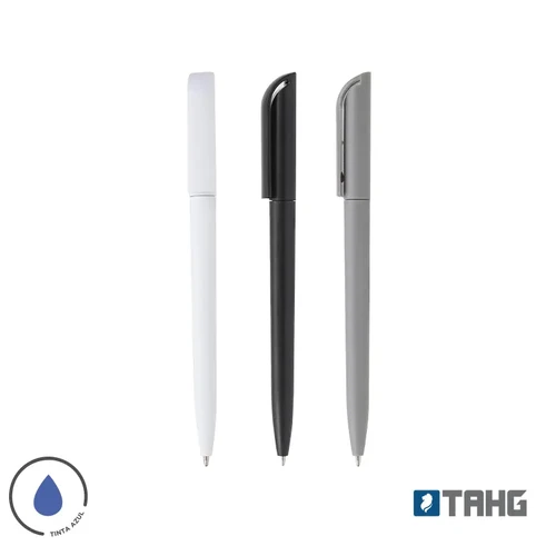 Lápiz plástico de cuerpo sólido. Tinta de color azul. Escritura aproximada de 500 mts. Apertura con rotación de cuerpo