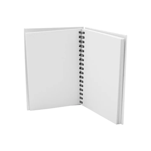 Libreta Ecológica blanca de Croquis, con Tapas Duras de Cartón Reciclado 650gsm, 80 hojas interiores prepicadas blancas de papel reciclado y anillado metálico doble cero. Presentación en bolsa plástica OPP transparente.