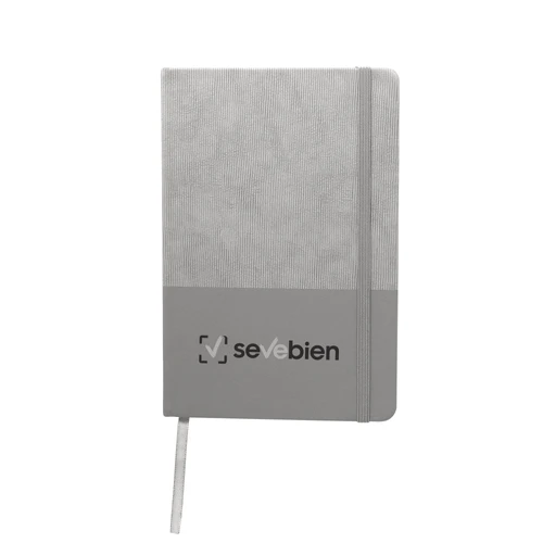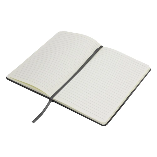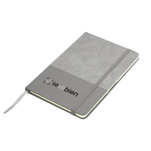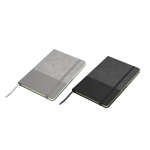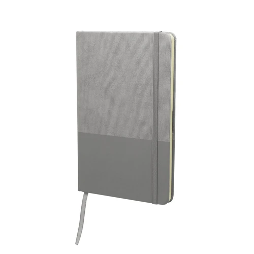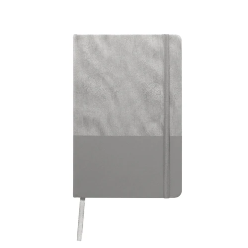 Diseño bicolor, inspiración sin límiteLibreta. Tapa de cartón de 1,8 mm recubierta en poliuretano bicolor con textura suave al tacto. Interior de 80 hojas rayadas en papel obra crema de 70g. Encuadernación cosido. Incluye cinta señaladora del color de la tapa. Cierre con banda elástica del mismo color.Medidas: 14 x 21 x 1,2 cm.