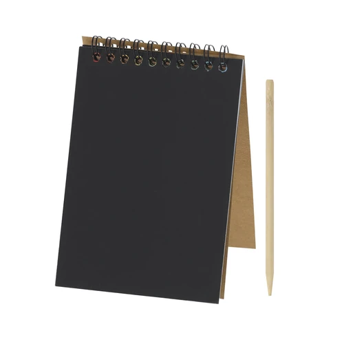Libreta tipo anillas tamaño A6, con hojas negras mate a una cara ideales para raspar y descubrir colores vibrantes.Incluye 8 hojas, rascador fabricado con una forma compacta y ergonómica para un agarre cómodo que permite dibujar en la superficie negra revelando una gama multicolor vibrante debajo. El Cartón Reciclado proviene del reaprovechamiento de excedente de fabricaciones y reciclaje de papel en el final de su vida útil, convirtiéndose en un lienzo ecológico y sostenible.