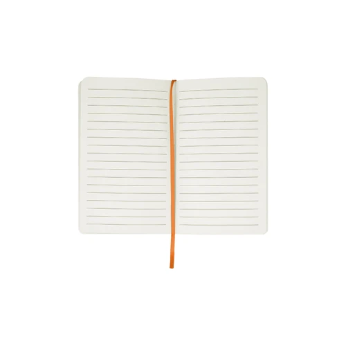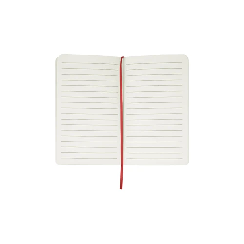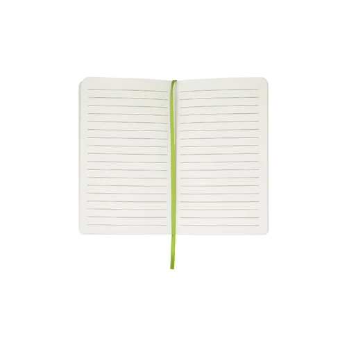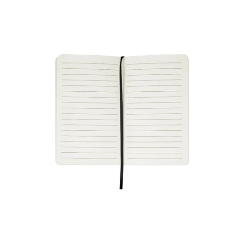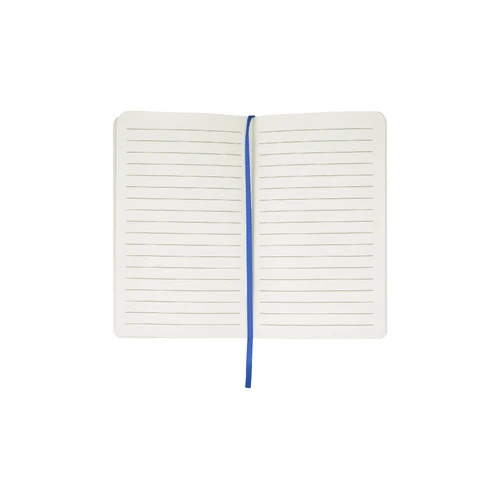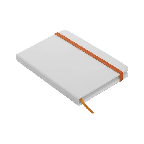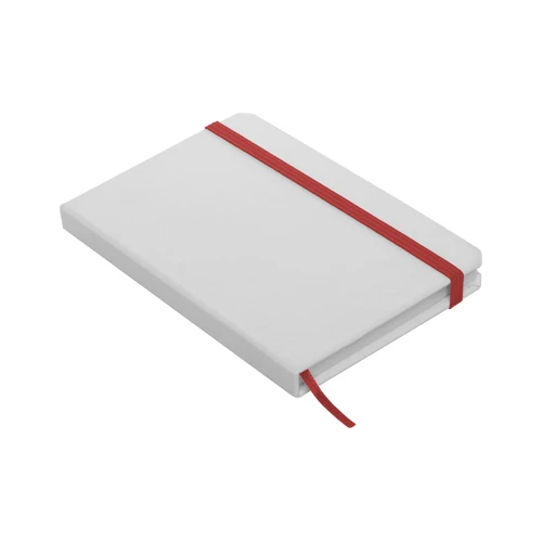 14,3 x 9,2 x 1,1 cm. Cartón. Libreta de tapa dura color blanco. Contiene 80 hojas rayadas, señalador y cierra con banda elástica del mismo color.