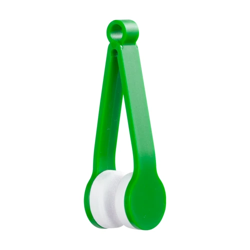 Limpiador de Lentes "OPTIC" con forma de pinzas. Gran alcance para todo tipo de lentes, cuenta con 2 pads redondos de microfibra.