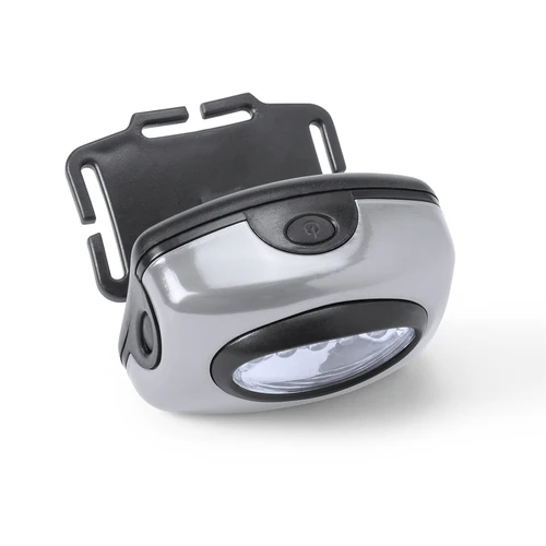 Linterna para cabeza de 5 ledes con tres modos de iluminación. Con cómoda cinta elástica ajustable y desmontable y cuerpo en resistente material en vivos colores. Alimentación a pilas: 3xAAA no incluidas. Presentado en caja individual plateada con bolsa de protección de burbuja.